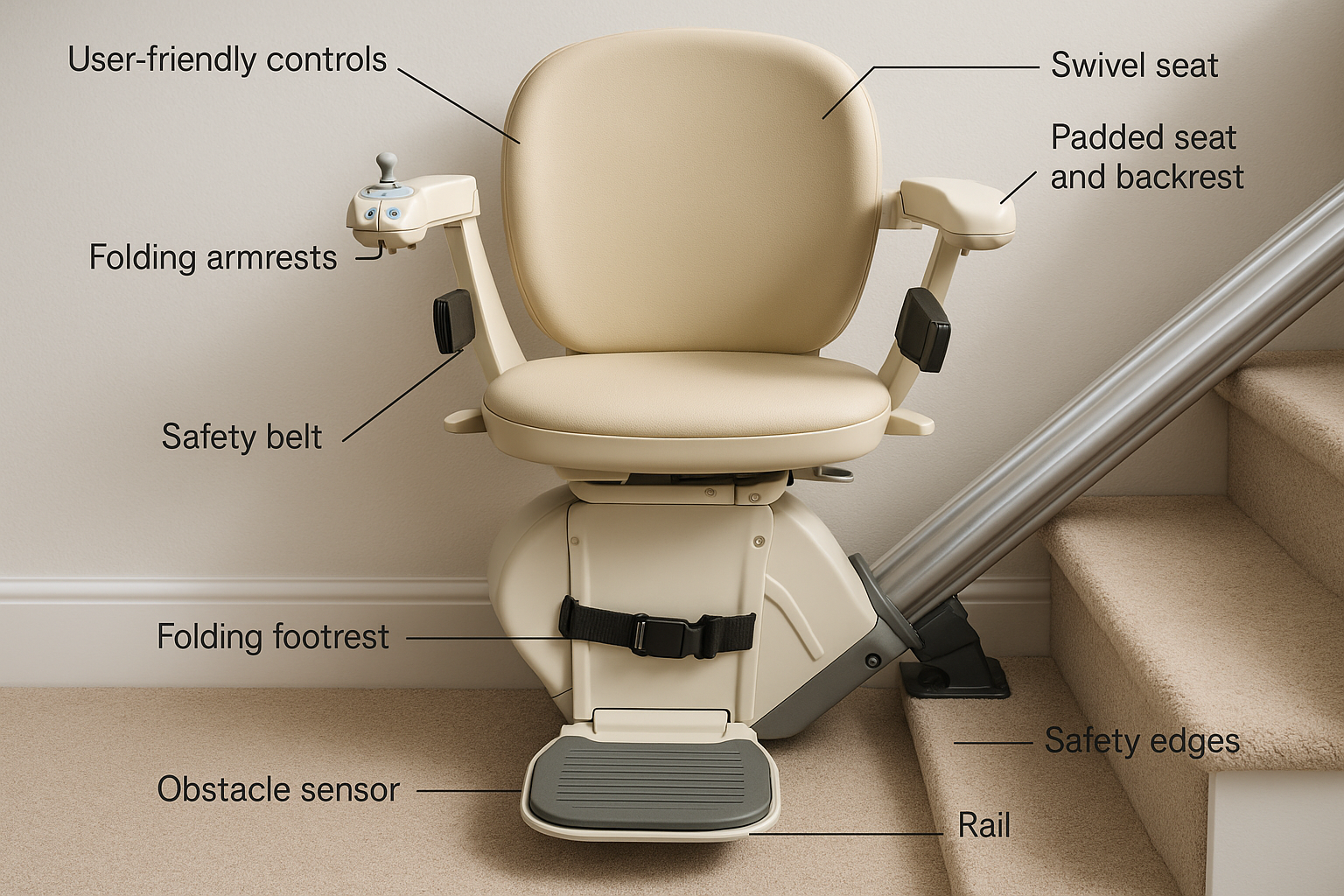 - Straight Stairlifts: Ideal for staircases without any curves or landings, these are the most common and cost-effective option.