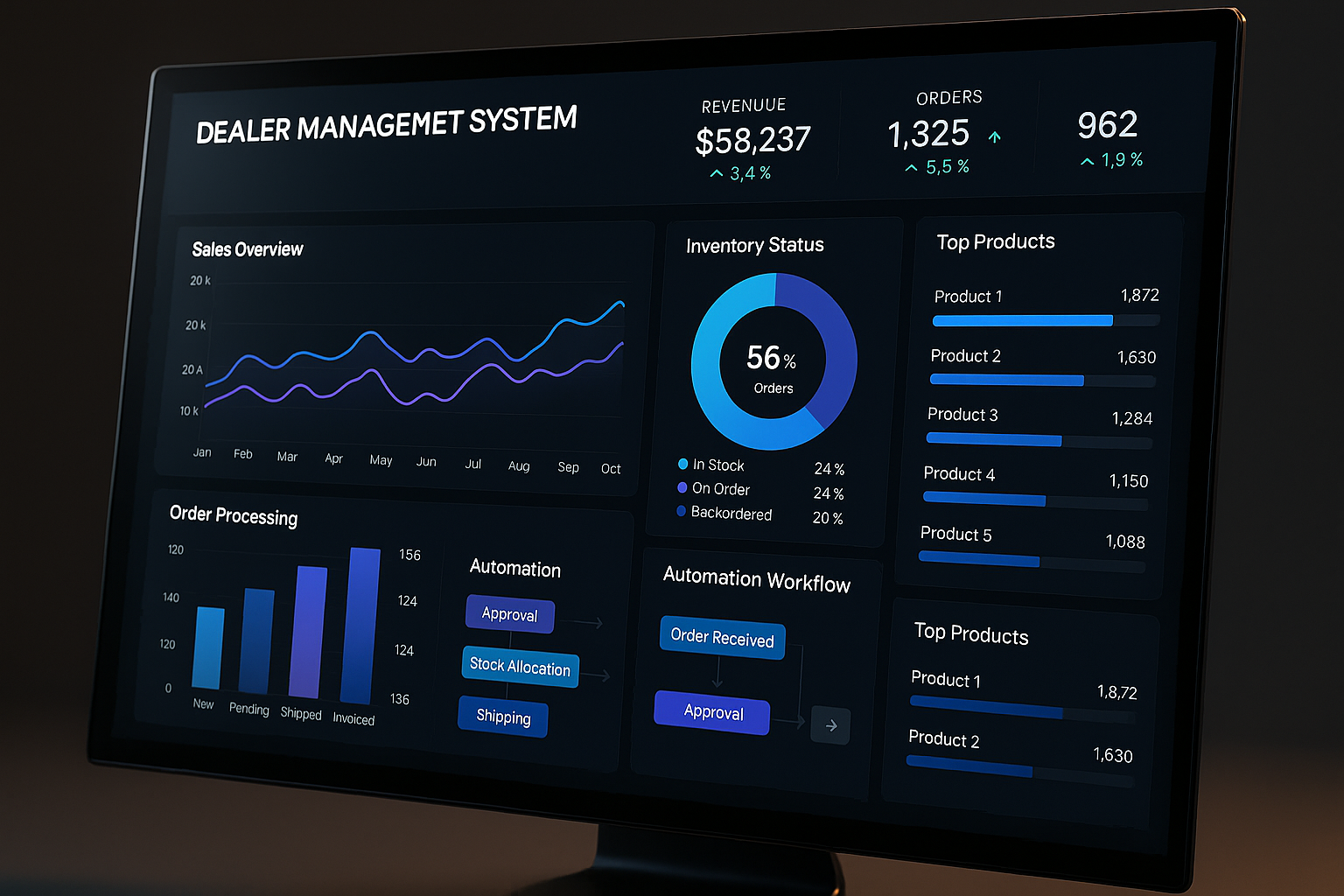Many dealerships have successfully implemented ERP systems to great effect. For instance, a major automotive dealership chain reported a 30% increase in sales efficiency after integrating an ERP system that streamlined their sales and inventory processes4. Another example is a marine equipment dealer that reduced its order processing time by 50%, leading to improved customer satisfaction and repeat business.
