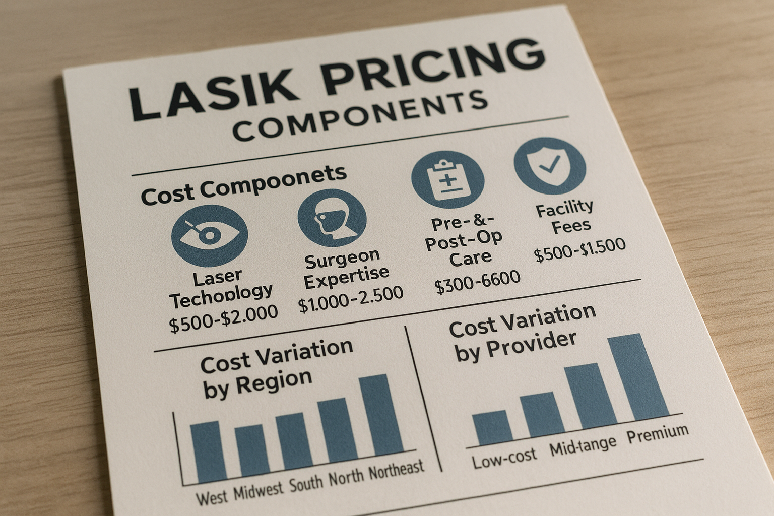 Several elements can impact the overall cost of LASIK surgery: